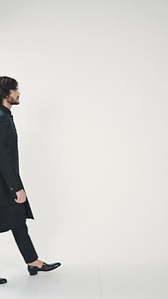 Black Embroidered Indowestern